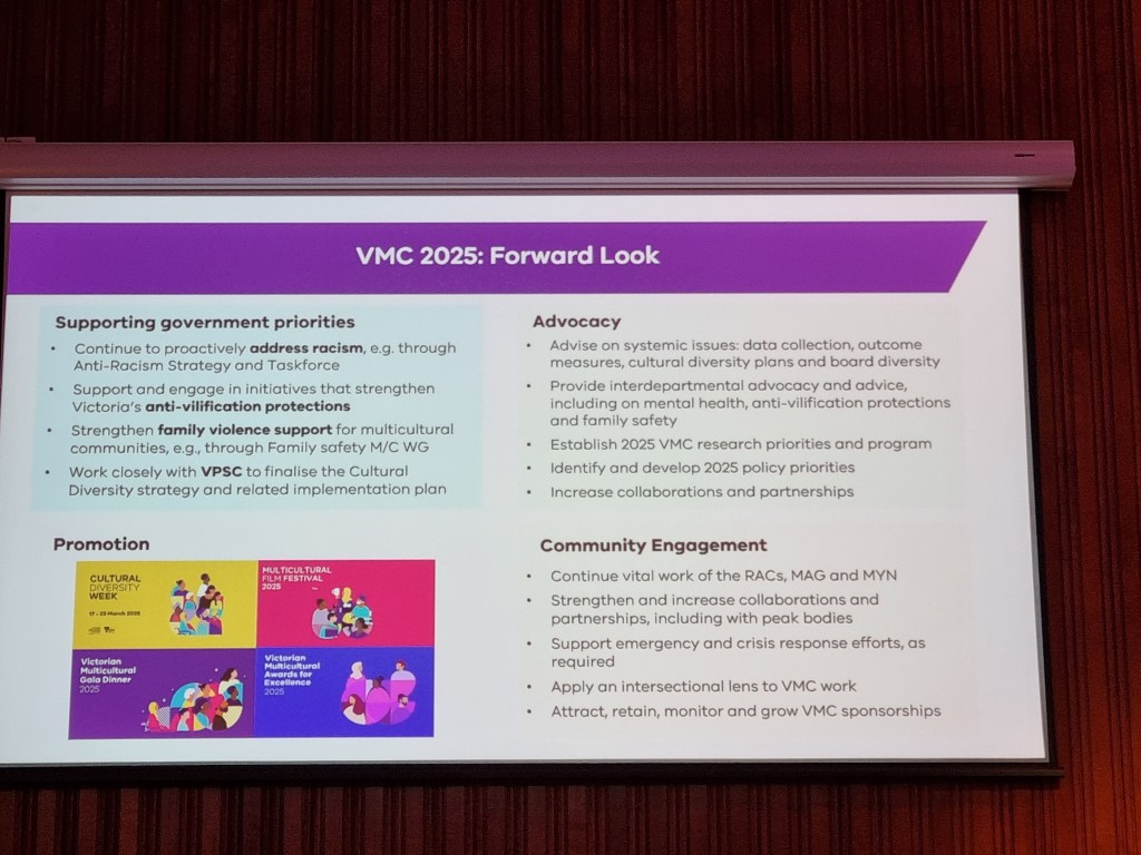 The Black Caucus became involved with the VMC in 2014 and served on the council from 2017 to 2020 where we discussed the needs of communities of colour and contributed to a report submitted to the minister via the Victorian Multicultural Commission.